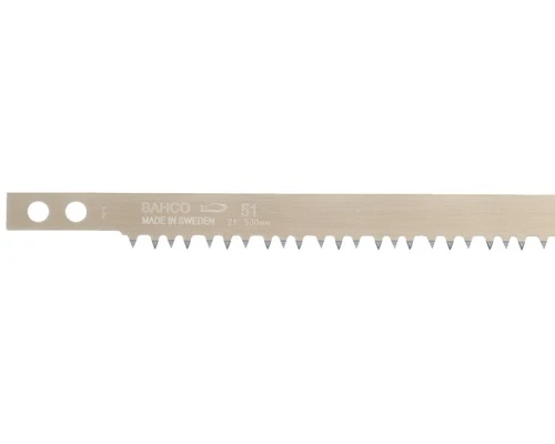 Beugelzaagblad voor het zagen van droog hout, maar ook te gebruiken voor het afkorten van vers hout. Het zaagblad is roestwerend behandeld en heeft een rechte vertanding van gehard staal.