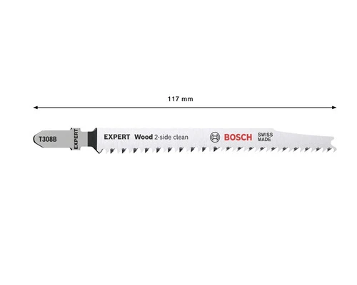 Met zijn extrascherpe precisiegeslepen tanden is het Bosch EXPERT ‘Wood 2-side clean’ decoupeerzaagblad zeer geschikt voor het zagen van zachthout tot 50 mm dik. Meubelmakers krijgen een perfecte afwerking en verliezen geen tijd met schuren na elke decoupeerzaagsnede. Beschikbaar voor rechte zaagsneden (T308B), voor gebogen zaagsneden (T308BO) en voor nauwkeurige hoekzaagsneden (T308BP).