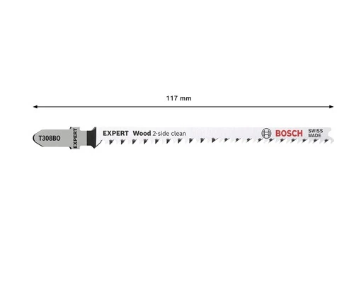 Met zijn extrascherpe precisiegeslepen tanden is het Bosch EXPERT ‘Wood 2-side clean’ decoupeerzaagblad zeer geschikt voor het zagen van zachthout tot 50 mm dik. Meubelmakers krijgen een perfecte afwerking en verliezen geen tijd met schuren na elke decoupeerzaagsnede. Beschikbaar voor rechte zaagsneden (T308B), voor gebogen zaagsneden (T308BO) en voor nauwkeurige hoekzaagsneden (T308BP).