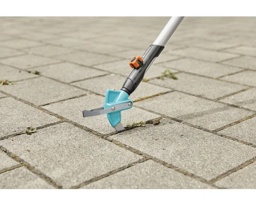Met de GARDENA combisystem 2in1 Voegenkrabber verwijder je gemakkelijk onkruid op paadjes, opritten en het terras. Dankzij de makkelijk verwisselbare accessoires is het GARDENA combisystem flexibel te gebruiken. De Voegenkrabber kan met alle stelen van het GARDENA combisystem gecombineerd worden en je bevestigt hem door hem op de steel te schuiven en vast te schroeven. GARDENA raadt een steel met een lengte van 130 of 150 cm aan, maar de keuze van de steel hangt ook af van de werkomstandigheden en je lichaamslengte. De veilige verbinding tussen klauwtje en steel zorgt ervoor dat je altijd comfortabel kan werken. Met de voegenkrabber verwijder je onkruid uit verschillende plekken en voegen van allerlei maten. Het stevige en dunne roestvrijstalen mes is optimaal voor gebruik in kleine voegen, bijvoorbeeld tussen terrastegels of bakstenen. De speciale, driehoekige, roestvrijstalen boog gebruik je voor bredere voegen. Met de boog verwijder je onkruid op effectieve wijze. Om de natuur te sparen biedt de Voegenkrabber een milieuvriendelijke, mechanische oplossing. De Voegenkrabber is gemaakt van hoogwaardige materialen en is daarom bijzonder robuust en duurzaam. Na langdurig gebruik kan je de boog vervangen. Met het combisystem Gereedschapsrek Flex (art.nr. 3505-20) berg je de voegenkrabber efficiënt op. GARDENA ondersteunt de combisystem 2in1 Voegenkrabber met 25 jaar garantie na registratie via gardena.com/registration binnen 3 maanden na aankoop. Let your tool family grow. GARDENA combisystem. Verwisselbaar. Duurzaam. Voor al je tuinwerk.