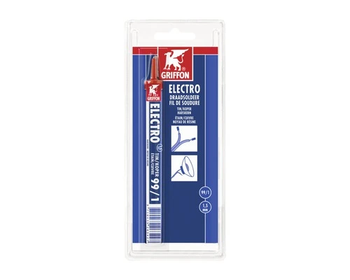 Electro Draadsoldeer Tin/Koper 99/1 Harskern. Voor het zachtsolderen van elektronica zoals o.a. reparatie van witgoed, audioapparatuur en huishoudelijke apparaten. Niet gebruiken in combinatie met een vloeimiddel.