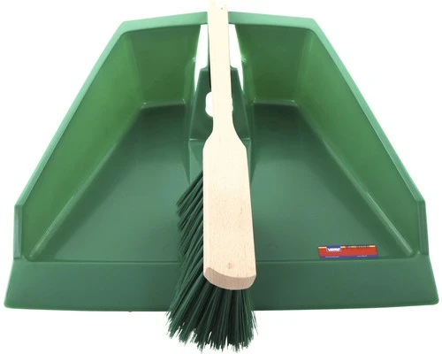 | Kenmerk | Set van groot kunststof groen blik met houten gelakte handveger, Ideaal voor werkplaats, magazijn, thuis en in de tuin |